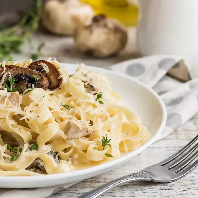 Idéalement, choisissez des tagliatelles fraîches pour préparer cette recette de pâtes aux champignons de Paris. Mais les penne, les farfalle et les spaghetti conviendront aussi parfaitement. Ce plat peut être consommé seul – en particulier pour un dîner – ou bien accompagné de jambon, de dés de poulet ou de lamelles de dinde par exemple.